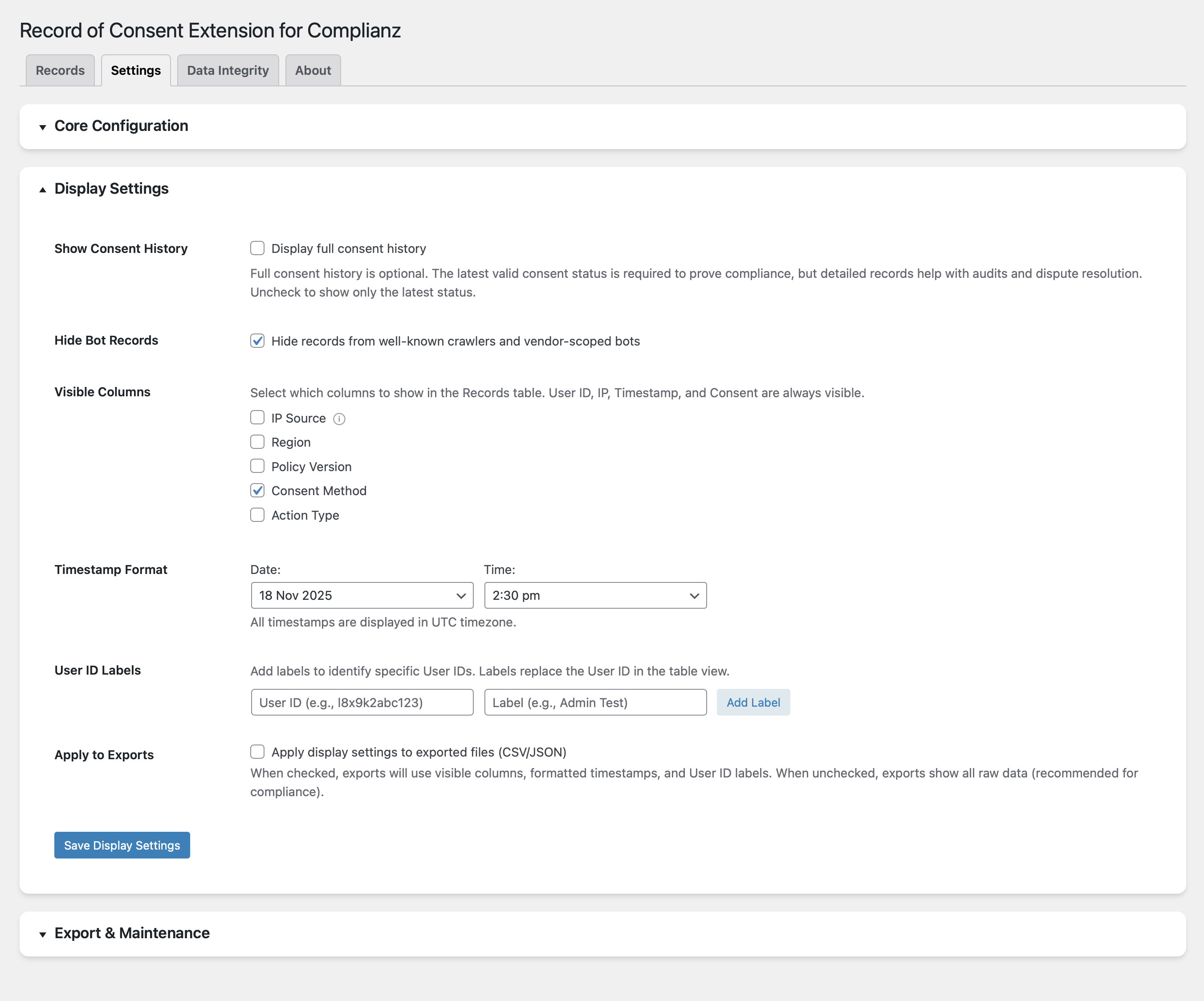 - Allows you to export all consent data, so you can keep a backup or review it offline.
